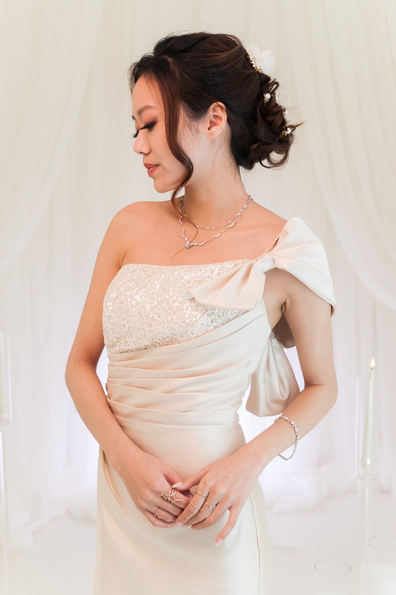 It was the perfect complement to my wedding day look—harmonizing effortlessly with my gown and a pair of sparkling champagne-colored platform pumps, making the moment feel even more unforgettable.